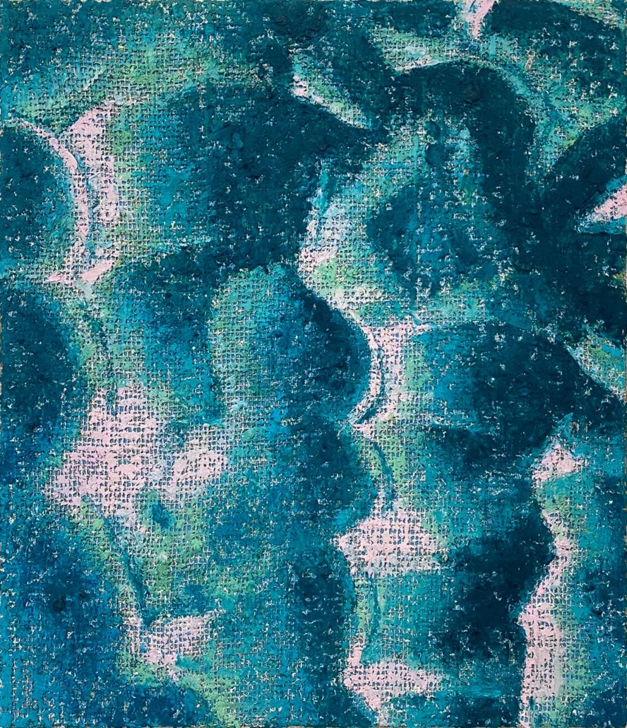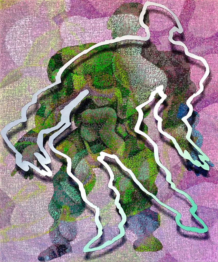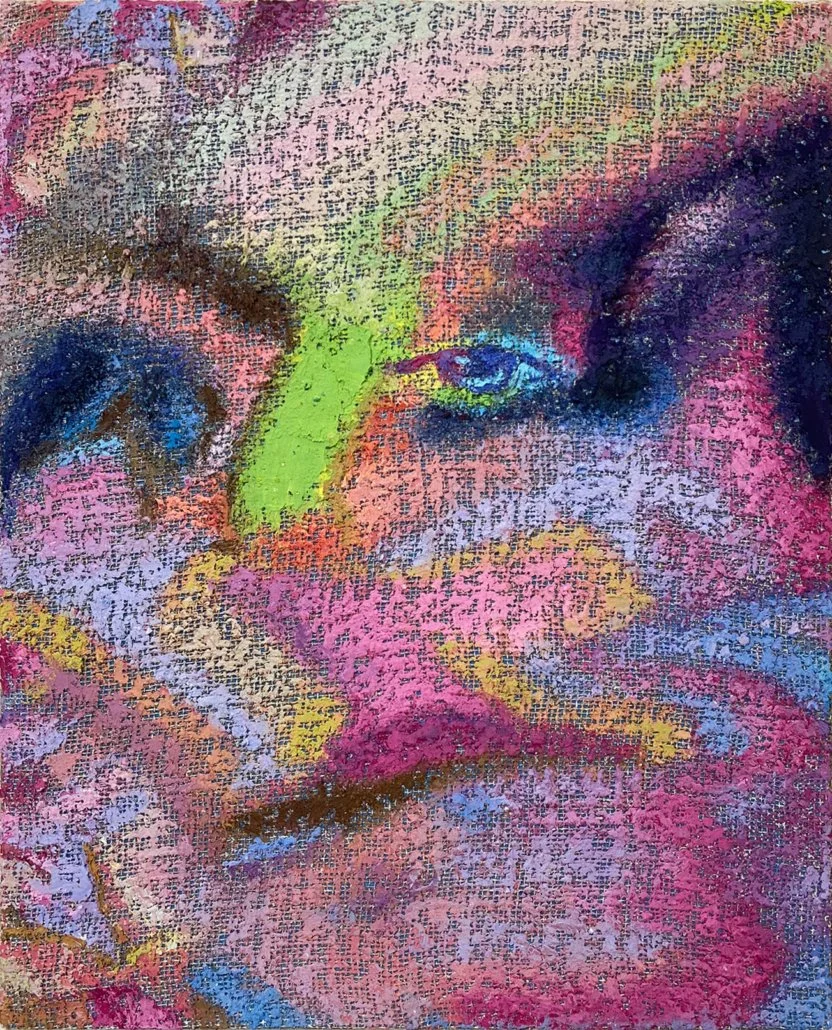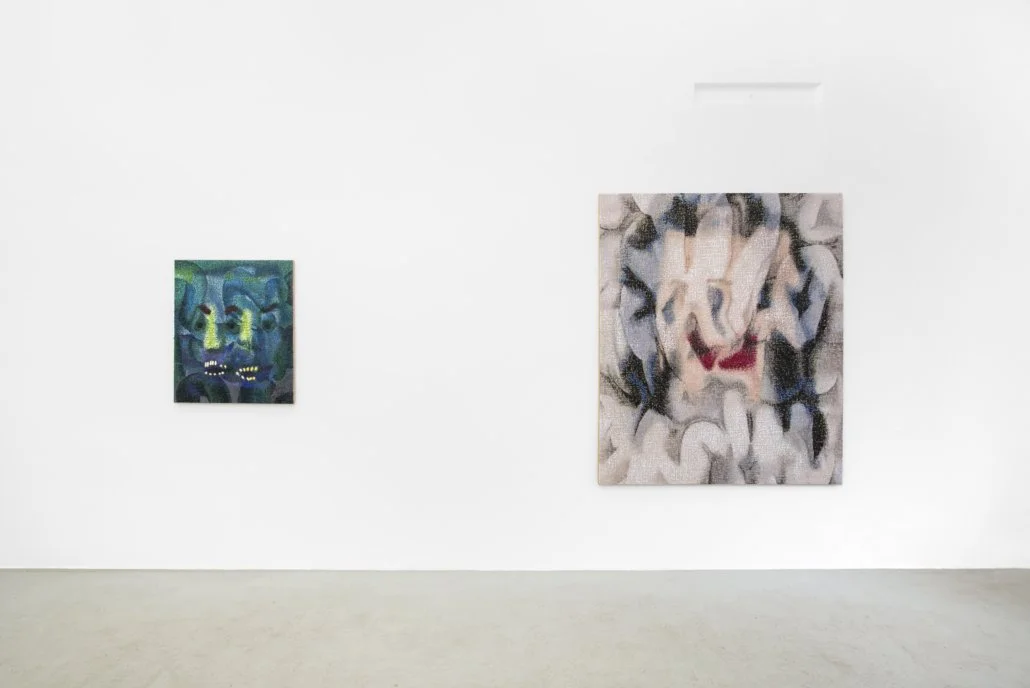 Charakteristisch für die Werke ist eine rasterartige Struktur, die sich aus dem Zusammenspiel von Farbauftrag und Malgrund ergibt. In unterschiedlich starker Deckkraft wird die Ölfarbe mit dem Spachtel auf ein grobmaschiges Jutegewebe aufgetragen, wodurch die Beschaffenheit der Leinwand sichtbar bleibt und zum wesentlichen Bildbestandteil wird. Es entsteht pixelartig wirkende Struktur, die zwischen abstrakten Gebilden und schemenhaft oder deformiert erscheinenden menschlichen Figuren changieren. Die Werke beschäftigen sich mit dem Einfluss des Digitalen auf unser Erleben. Selbstdarstellung, Informationsdichte und Umgang mit Bildern, dieses Phänomen sowie unsere Verhaltensmuster in der digitalen Welt, werden hier angesprochen, und in das klassische Medium der Malerei übersetzt.
